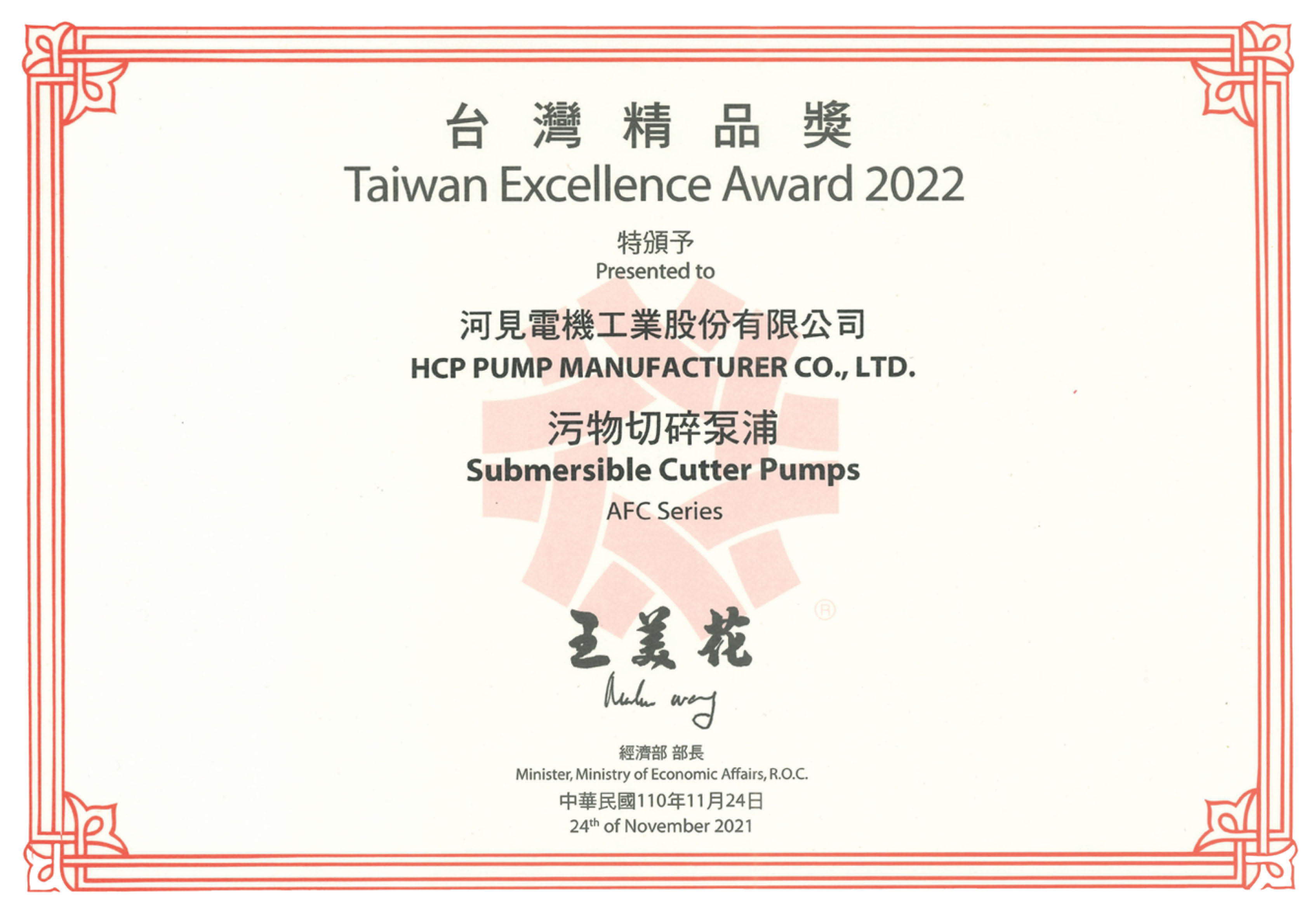 狂賀!河見AFC系列污物切碎泵浦,榮獲「第30屆台灣精品獎」
