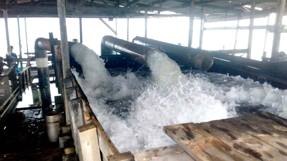 養蝦成敗決定於環境、水質、天氣等因素,本案選用河見AF污物廢水泵浦系列,安裝離海岸外400公尺處之取水泵站,將海水引進蓄水池後打至蝦池。泵浦外殼使用鑄鐵材質塗裝高固漆,經久耐用;機械軸封潤滑油採用食品醫療級白礦油,不含毒物不危害環境;加裝犧牲陽極片替代泵浦殼體因釋放金屬離子產生腐蝕而被分解,有效延長泵浦使用壽命。