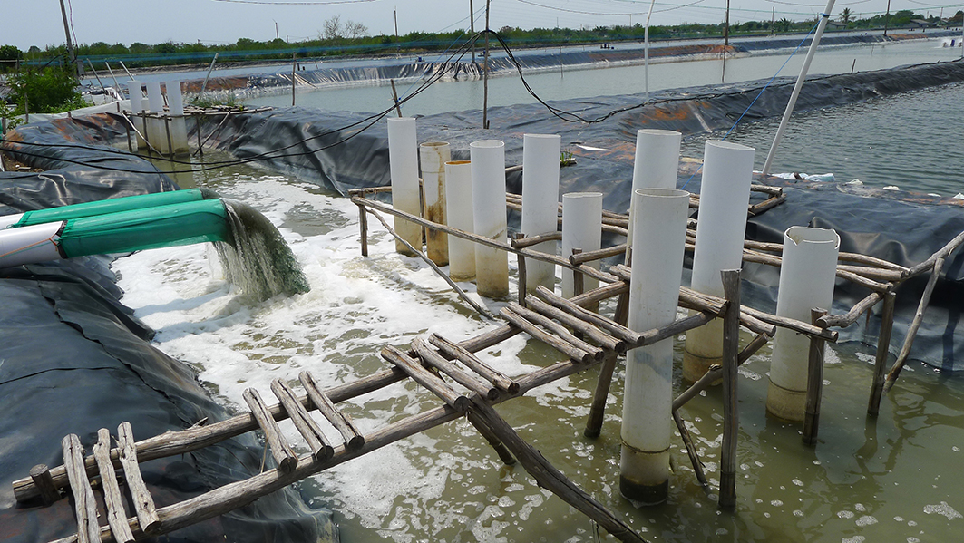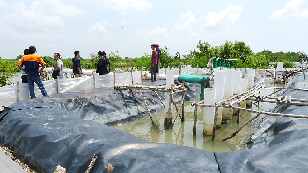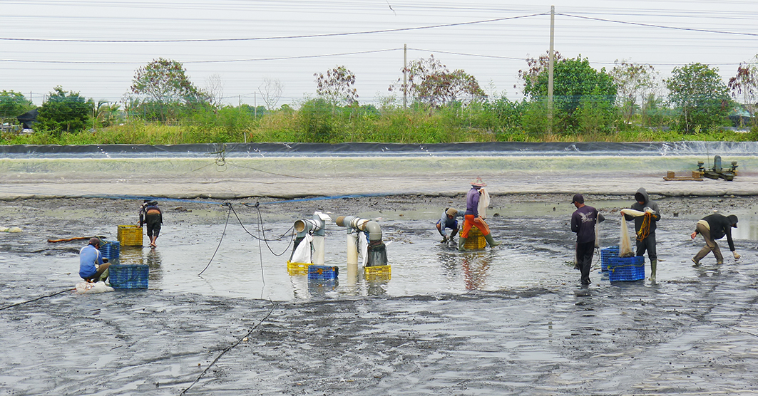 印度尼西亞海洋漁業部提出,印尼蝦養殖場面積有120萬公頃的開發潛力,目前有效養殖場面積為773000公頃;由於全球養殖蝦供應短缺,印尼將有望成為全球最大的養殖蝦生產國和出口國。 本案於印尼某一養殖蝦場,選用河見L-200A大排水泵浦,平時固定放置於蝦池中央排水;收蝦時,選用方便移動的河見L-63A大排水泵浦,將水位排的更低。中央河道則選用河見L-250A大排水泵浦,將海水抽至沉澱淨化池,經曝曬消毒後再供給鄰近蝦池使用。