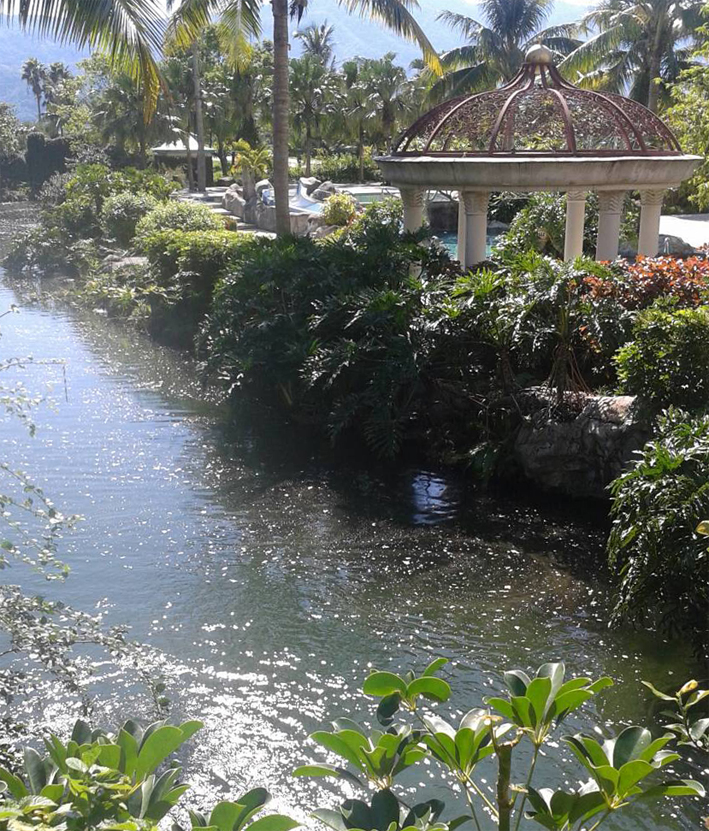 位於花蓮縣壽豐鄉的理想大地渡假村,除了有花蓮的新鮮空氣與廣闊的佔地,還有其最具著名的人工運河。長達2.2公里的蜿蜒河道,搭配自然優美的西班牙式建築風格,讓理想大地以「提昇心靈之地」,榮獲國際專刊《100 Hotels + Resorts》 評選為「世界百大旅館」。除了用使用大量石頭、木頭、磚頭、鐵頭和皮革建構,董事長梁清政要讓前來住宿的旅客擁有自己的天空、自己的草坪,還要能一出房門就摸得到水,讓旅客回歸自然的理想大地。
